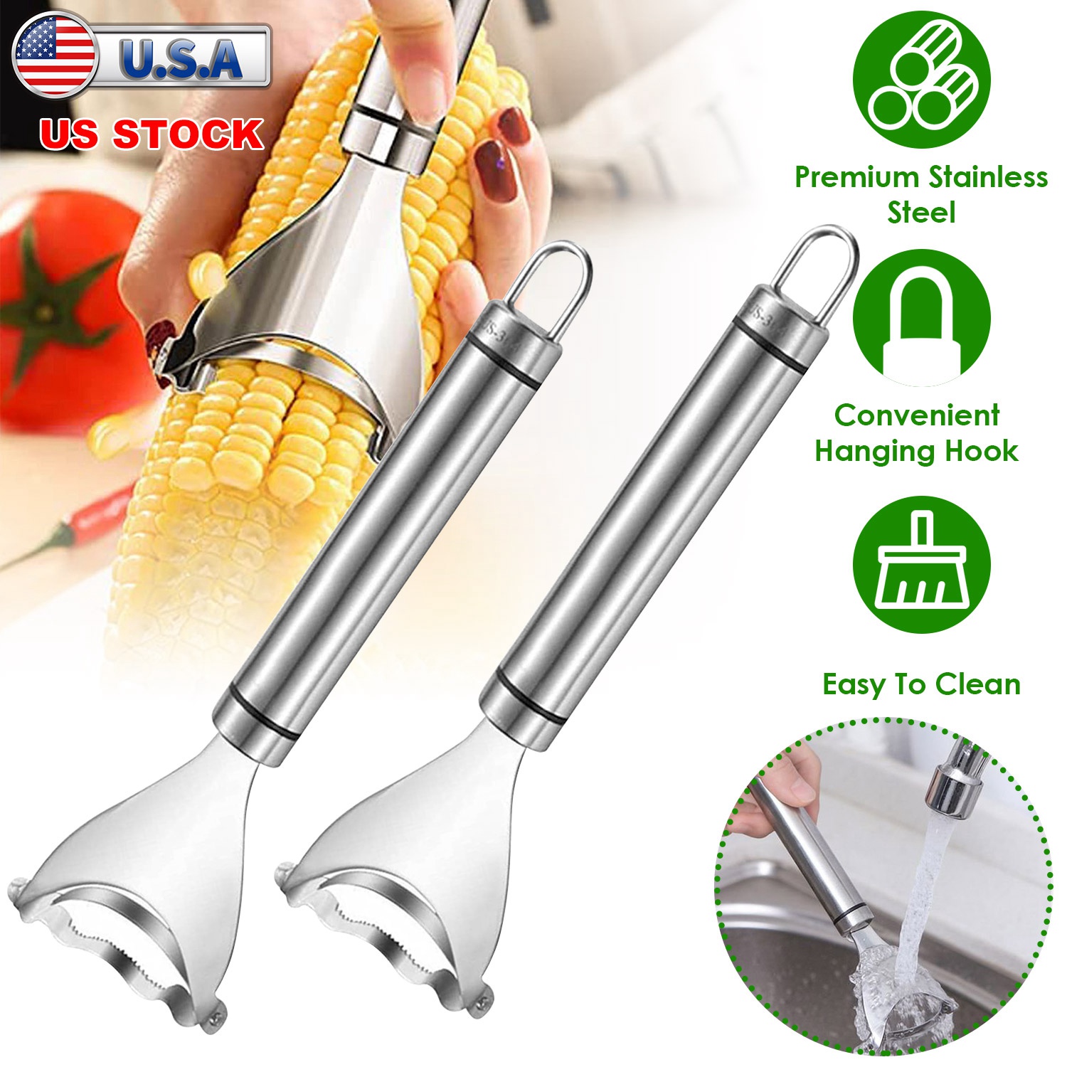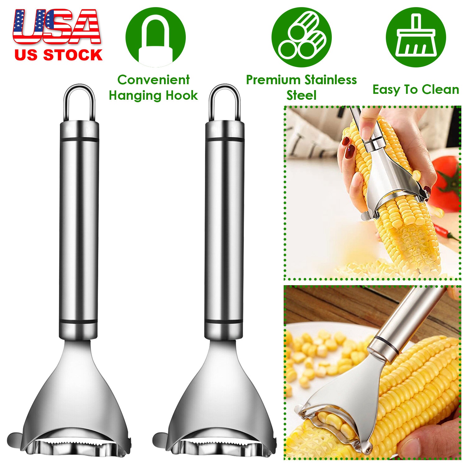 Home > 2Pcs Stainless Steel Corn Cob Peelers One-Step Cob Kerneler Remover Kitchen Corn Stripper Cutter Slicer Thresher Tool